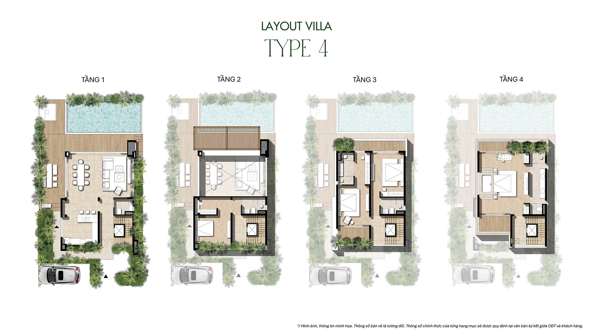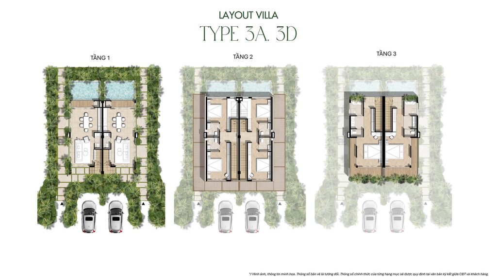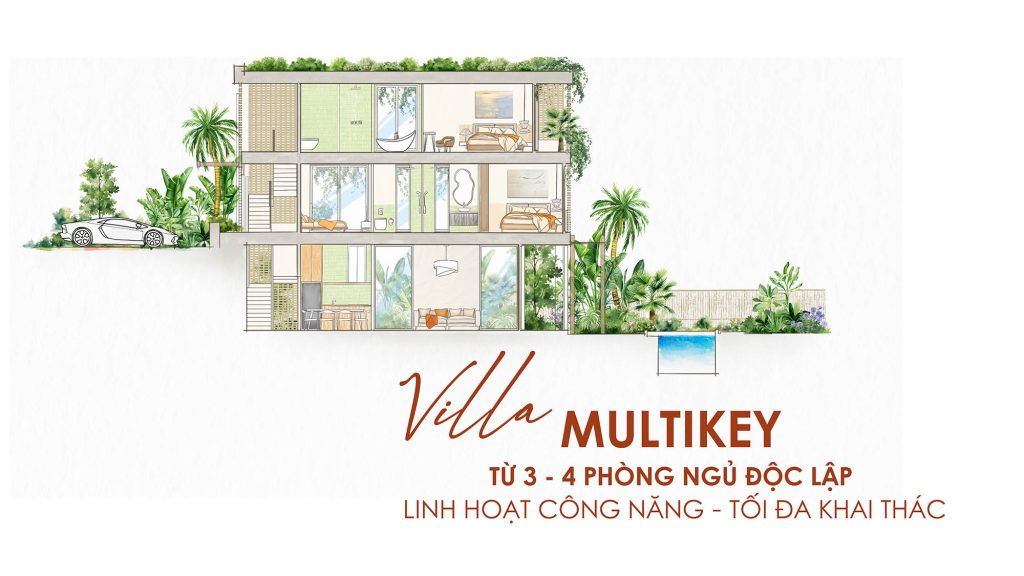 – Villa có 3-4 phòng ngủ: chìa khóa & lối đi riêng